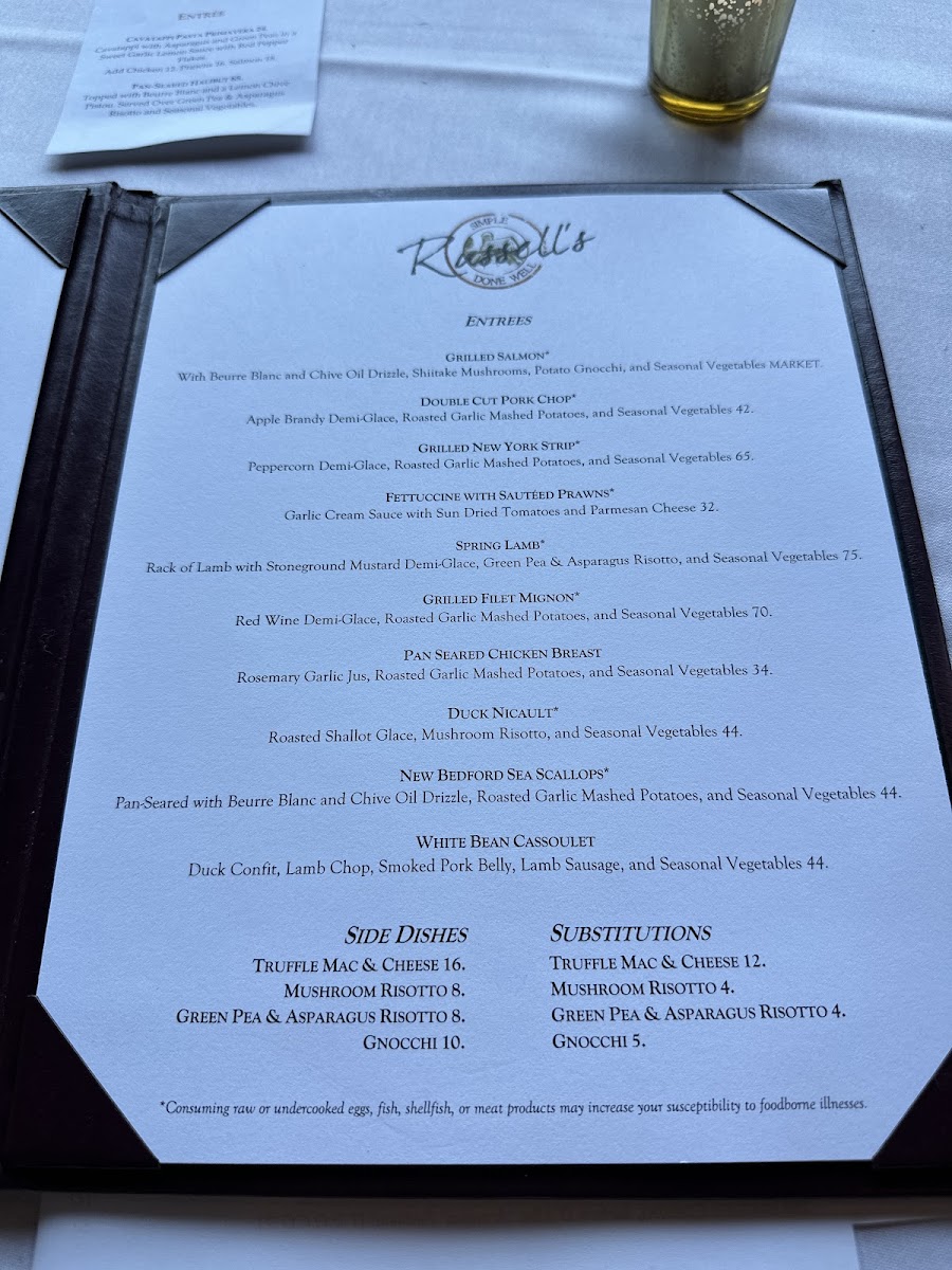 At the core of Russell's allure is a carefully curated menu featuring a medley of refined American cuisine. The culinary creations are nothing short of spectacular. Start your meal with the Baked Brie, perfectly complemented by a house-made ginger pear compote and crispy sourdough baguette crisps, an appetizer that whispers elegance. For something a tad more adventurous, indulge in the Pan-Seared New Bedford Sea Scallops, artfully prepared to create a flavor profile that dances on your palate, enhanced by a vibrant lemon thyme gastrique.